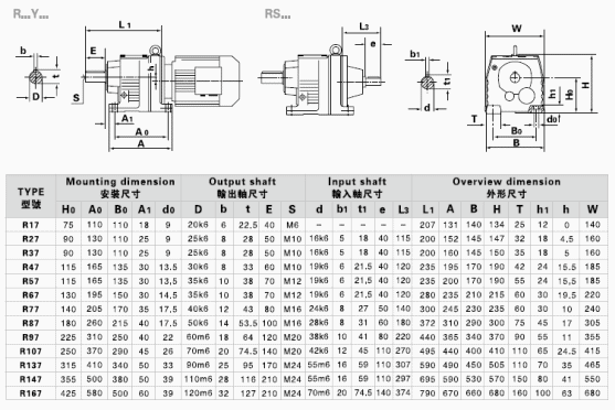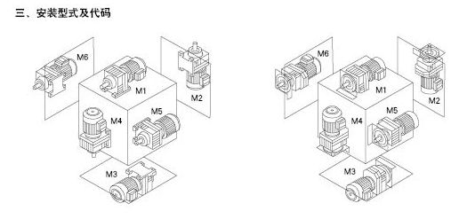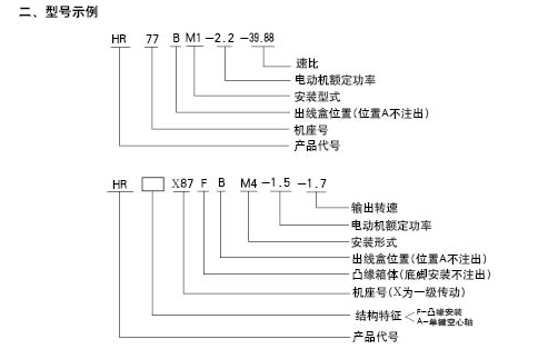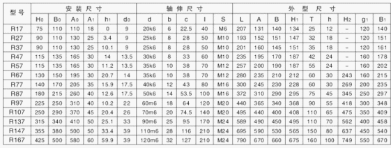 R…F:底腳法蘭安裝 RM: 法蘭安裝帶加長(zhǎng)軸承箱